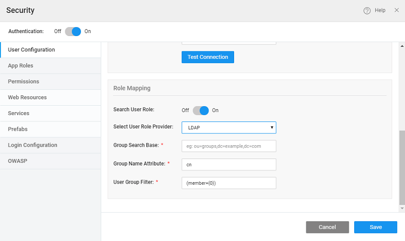 - Search User Role: Check this box to select the user role provider - Database or LDAP.