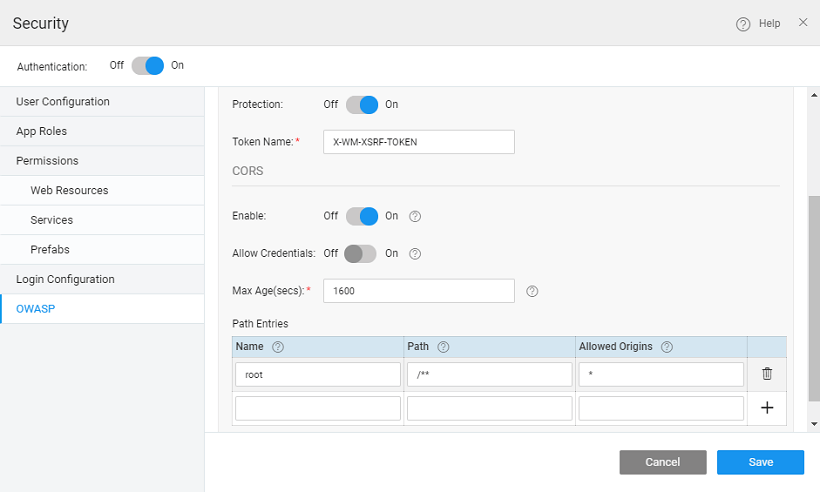 - Origins: WaveMaker app resources can be exposed only to these origins.