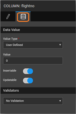 - If the Value Type is selected as User Defined or Server Defined, both Insertable and Updatable options are selected by default. You can edit the options, but at least one option has to be selected.