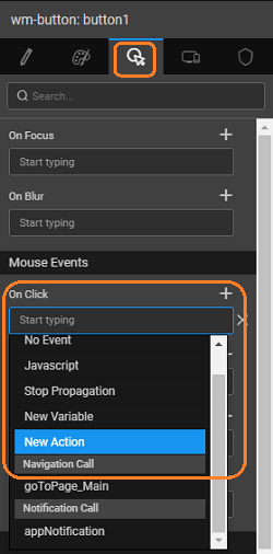 • or, as a New Action event on any widget