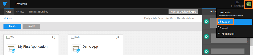 - You can set your personal preference, from Studio, by opening the Account Profile.