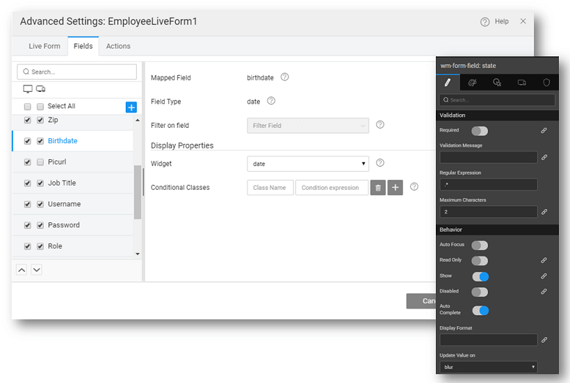 Live Form - Fields Configuration