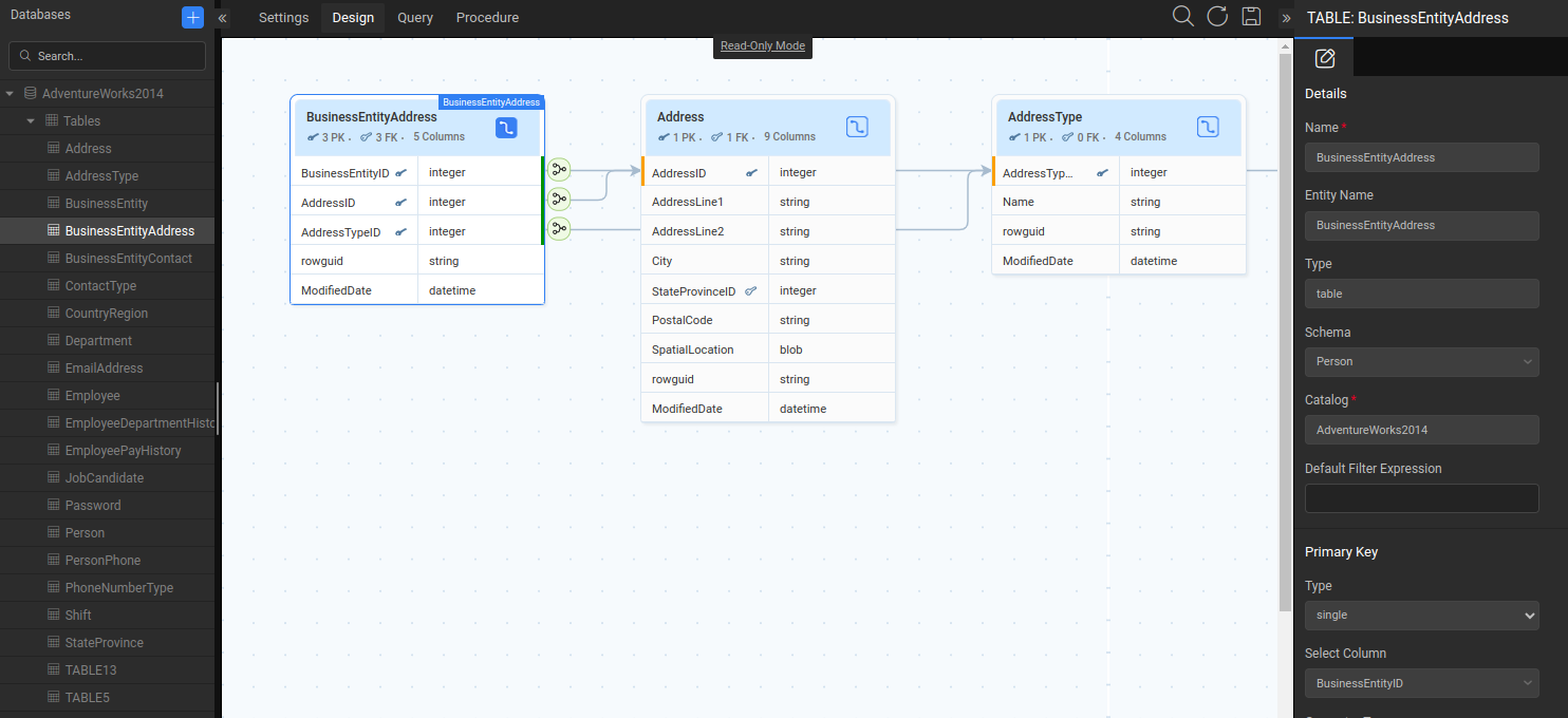 Instead of offering full schema management capabilities, the redesigned Database Designer now imports your schema in a read-only mode. This gives users a quick, clear view of their database structure without overwhelming them with unnecessary functionality.