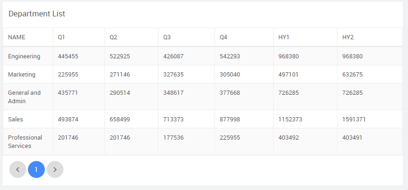 You can combine two or more columns to be displayed in a single column in a Data Table. Use Case: From the Department table, display two half-yearly budget figures by adding the values for first two and the second two quarters. We will be using the hrdb that is shipped with WaveMaker.