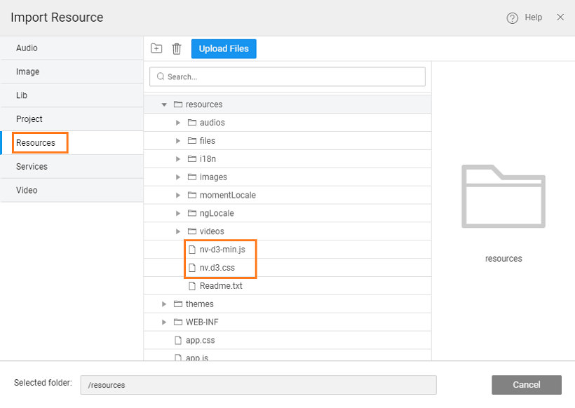 6. Import Resource, to import the d3-min js file (download and extract the file) into the Resource folder of your Prefab.