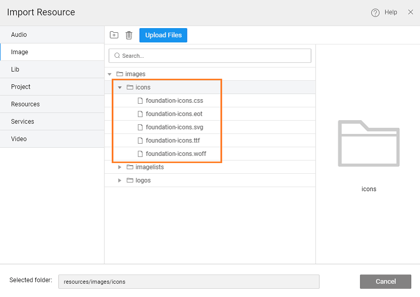 In this topic, learn how to add additional icons. In the following example, we are adding foundation icons.