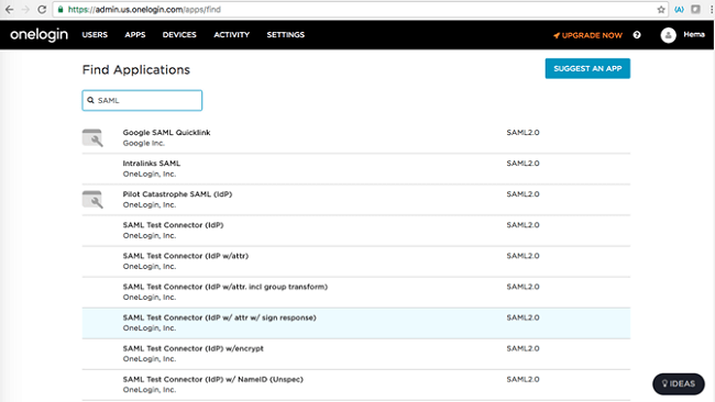 4. Clicking on ADD APP button will take you to the following screen: onelogin_2