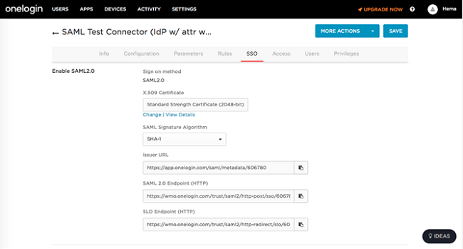 3. From OneLogin, using the above Single Lougout URL obtain the Issuer URL