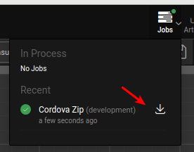 - When the job gets completed, you can download the Cordova zip by clicking on the download icon as shown in the below image.