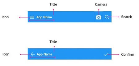 Mobile Navbar is created specifically for hybrid apps to construct page header. It contains an icon, title and a list of actions on left and right sides.