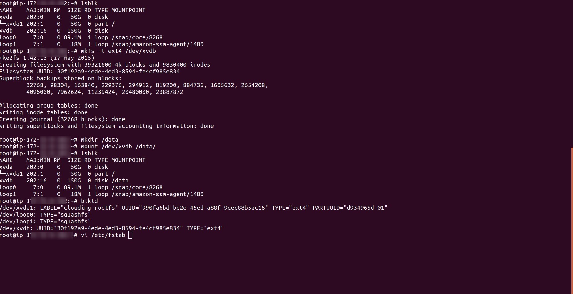 - To mount an attached EBS (Elastic Block Store) volume on every system reboot, add an entry for the device to the /etc/fstab file.
