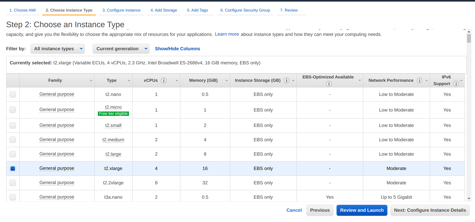 - Choose 16 GiB memory instance types from desired family and type.