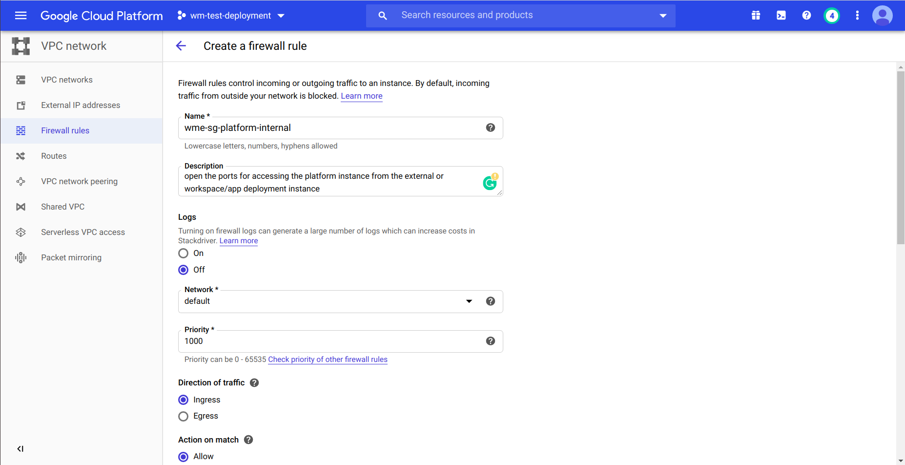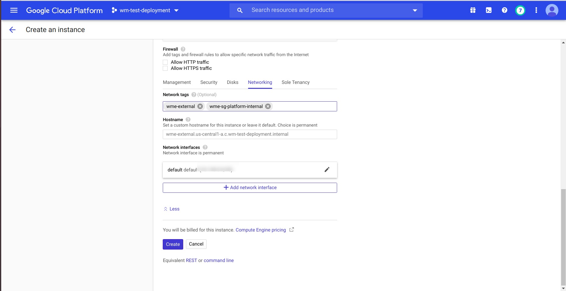 - At network section provide respected network tags of your firewall if you using source and target tags at firewall rules and create Instance.