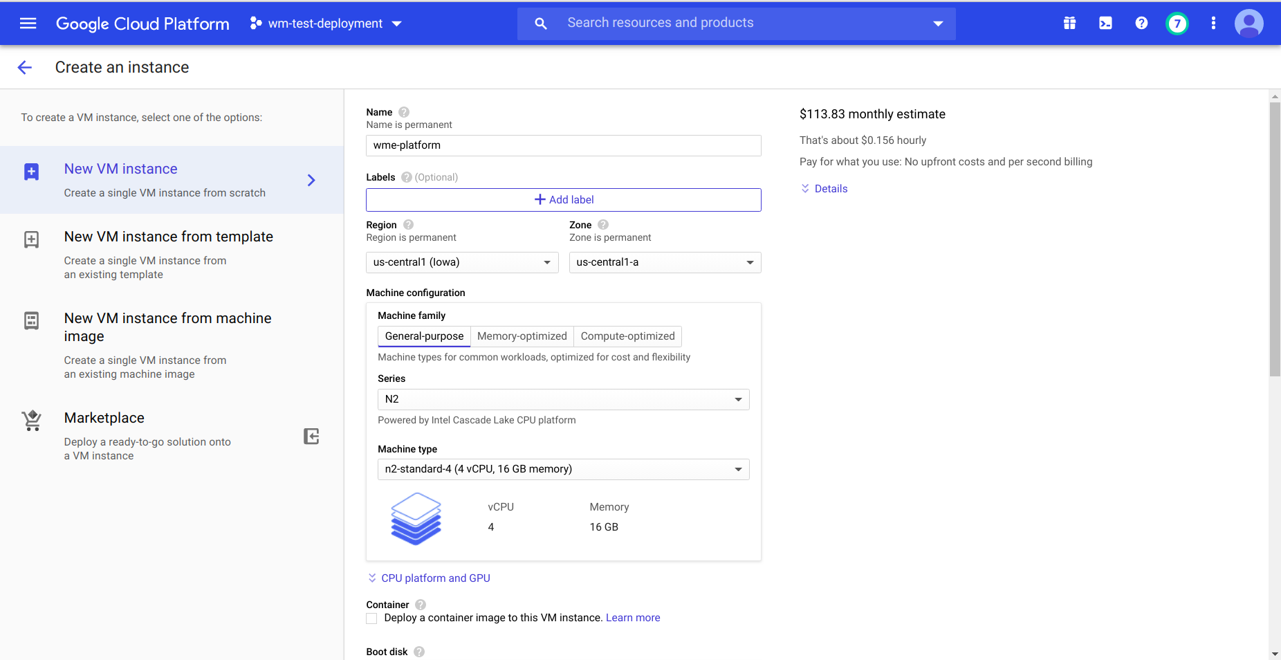 - Select region,zone and provide name for Instance.select machine type with minimum 16 GB memory.