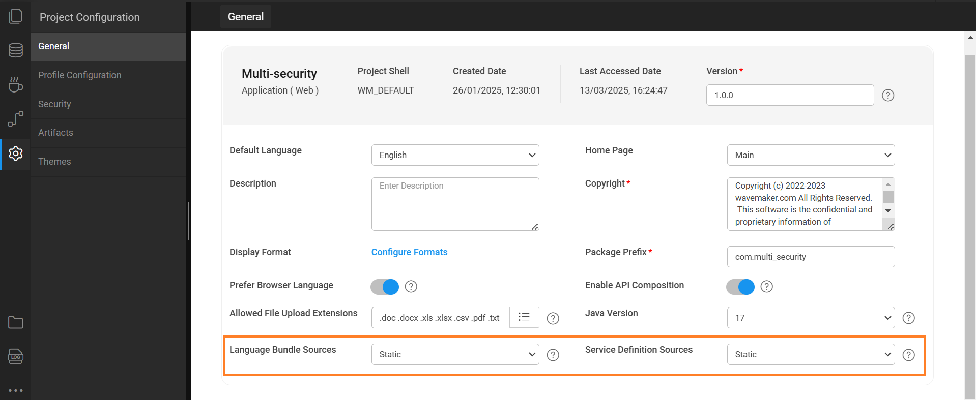 In this release, we have introduced two new options in the Project Settings section: Language Bundle Sources and Service Definition Sources. Each option can be set to either STATIC or DYNAMIC, with STATIC as the default. These options provide flexibility in sourcing and delivering content.