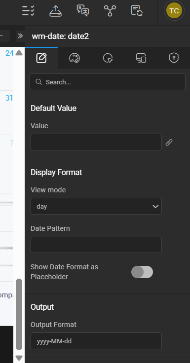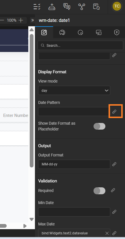 Previously, the Date widget did not support dynamic binding for the Date Pattern property — it could only be set using a static value. This limitation restricted users from implementing more flexible scenarios. We have now added support for dynamic binding of the Date Pattern property. The same enhancement applies to the Time and Datetime widgets also.